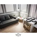 The accommodation includes a sitting area, complete with a sofa set and modern conveniences such as a satellite television and Wi-Fi. The apartment also features parquet floors. Offering a walk-in shower and a separate toilet, a bathroom comes with hair dryers and bath sheets.